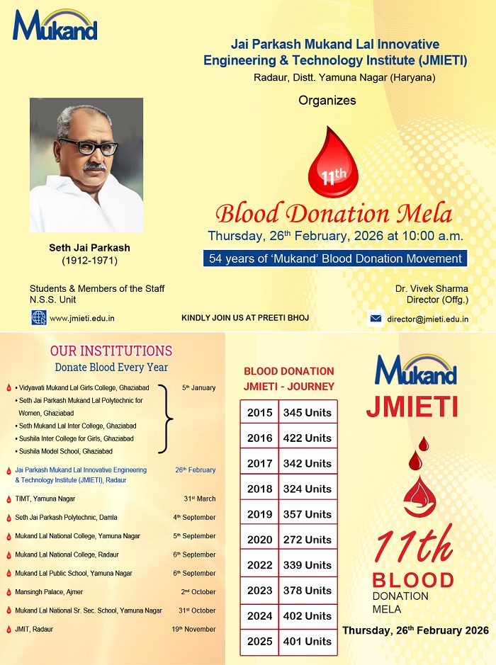 Admission to all courses in JMIETI is in accordance with per All India Council for Technical Education (AICTE), Haryana State Technical Education society (HSTES) and KUK. Online counselling is being conducted by Department of Technical Education, Govt...